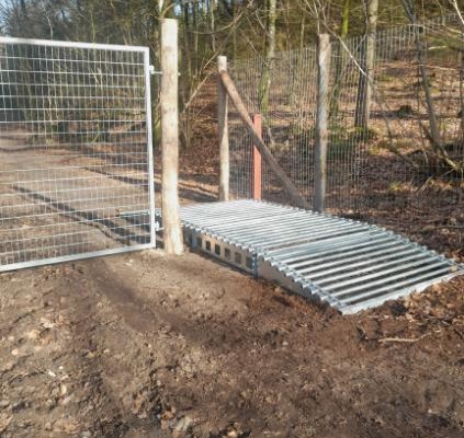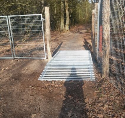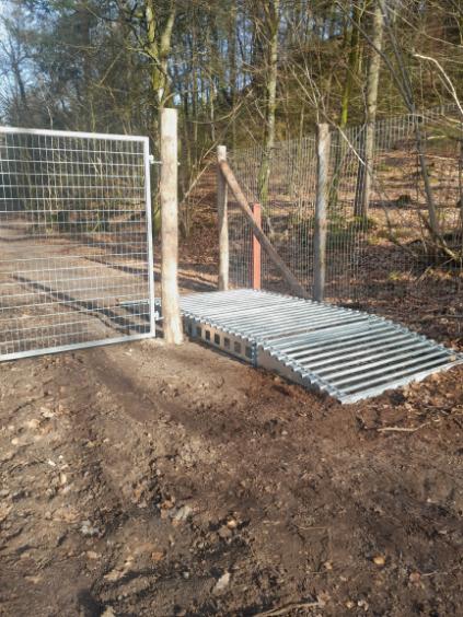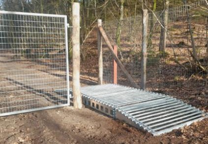 Färisterna är installerade i Naturnationalparken vid Fussingø och används på mountainbikeleder för att säkerställa att boskapen stannar inom området – samtidigt som cyklister enkelt kan passera.